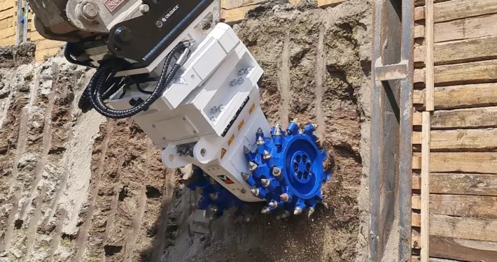 Eine KEMROC-Querschneidkopffräse KRD 120 mit Rotationsmodul kam beim Anlegen eines „Berliner Verbaus“ im schwäbischen Leonberg zum Einsatz.